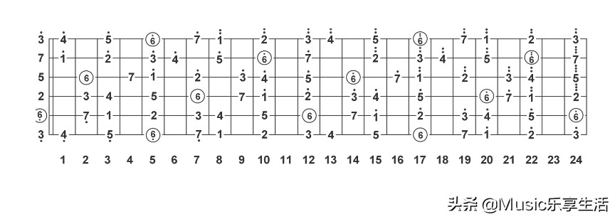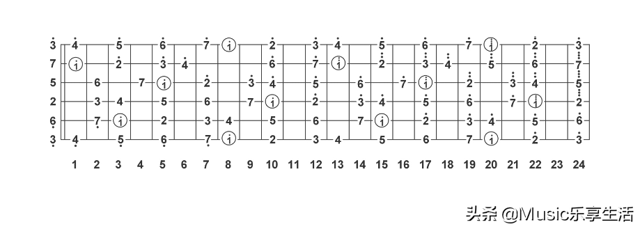 A小调音阶在指板上的位置图
