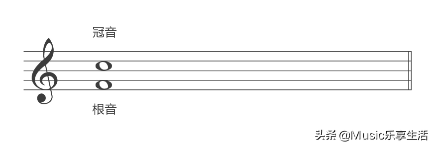 音程中低的音称为“根音”,就像大树的树根;高的音称为“冠音”,就像大树的树冠。如下图中,fa为根音,高音do为冠音。