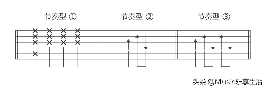 在吉他中,常见节奏型的表现形式有以下几种: