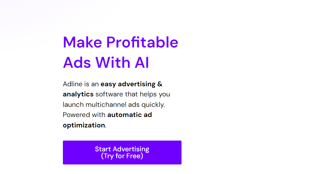 广告功能 Adline是一款易于使用的在线广告制作工具,可帮助您启动和运行多渠道广告。它受到全球 5000 多名企业主的信任,他们几乎没有营销经验,但效果很好。 主要特征: 多渠道广告创建者:为多个平台创建广告。 自动优化:人工智能驱动的优化以获得更好的结果。 点击地图分析:跟踪用户与您的广告的互动。 访客旅程:了解从第一次点击到最后一次点击的整个客户旅程。 模板:在模板库中复制来自全球广告商的获奖广告。 无代码分析:无需编码知识即可轻松进行转化跟踪。 用例: 寻找易于使用的广告工具的中小型企业。 需要简单但功能强大的广告管理解决方案的初学者。 想要跟踪广告效果并优化其广告系列的企业。 总的来说,Adline 提供了一种易于使用的广告和分析工具,适合各种规模的企业。凭借其 AI 驱动的优化和综合分析,用户可以获得更高的投资回报率和更高的广告效果。