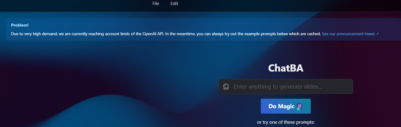ChatBA是一款人工智能驱动的工具,旨在自动生成各种主题的幻灯片。主要特点和优势包括: 快速幻灯片生成:使用 OpenAI API 根据用户提供的提示或主题创建幻灯片 多功能性:为商业演示、书籍、房地产市场等生成幻灯片 最少的用户输入:旨在以最少的努力创建专业级幻灯片 ChatBA 的用例可满足各种专业人士的需求: 寻求以最小的努力创建令人印象深刻的演示文稿的商业专业人士 希望为各种主题生成幻灯片的教育者和培训师 个人时间紧迫或缺乏对特定主题的了解 总体而言,ChatBA 为快速高效地创建专业幻灯片提供了强大的解决方案。