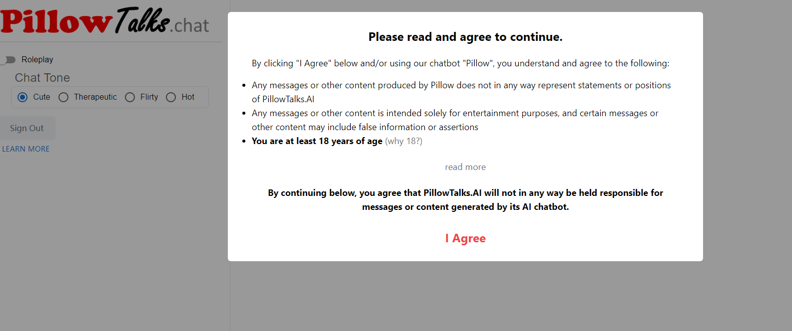 PillowTalks 是一款人工智能聊天机器人伴侣,提供交互式对话体验,重点关注调情和可爱的对话。它专为娱乐目的而设计,要求用户阅读并同意所提供的条款和条件。 主要特征: 互动对话体验:与人工智能聊天机器人伴侣进行调情可爱的对话。 娱乐目的:旨在提供娱乐和有趣的互动。 条款和条件:用户必须阅读并同意所提供的条款和条件。 年龄限制:适用于年满 18 岁的用户。 Alpha 阶段开发:聊天机器人仍在开发中,随着改进的进行,一些响应可能会很奇怪或令人反感。 用例: 以俏皮和有趣的方式享受调情和可爱的对话。 探索人工智能聊天机器人的功能,以实现互动和引人入胜的体验。 出于娱乐或陪伴目的与虚拟同伴互动。 体验 AI 聊天机器人在 alpha 阶段开发中不断发展的本质。 PillowTalks 为用户提供了通过人工智能聊天机器人伴侣进行调情和可爱对话的机会。