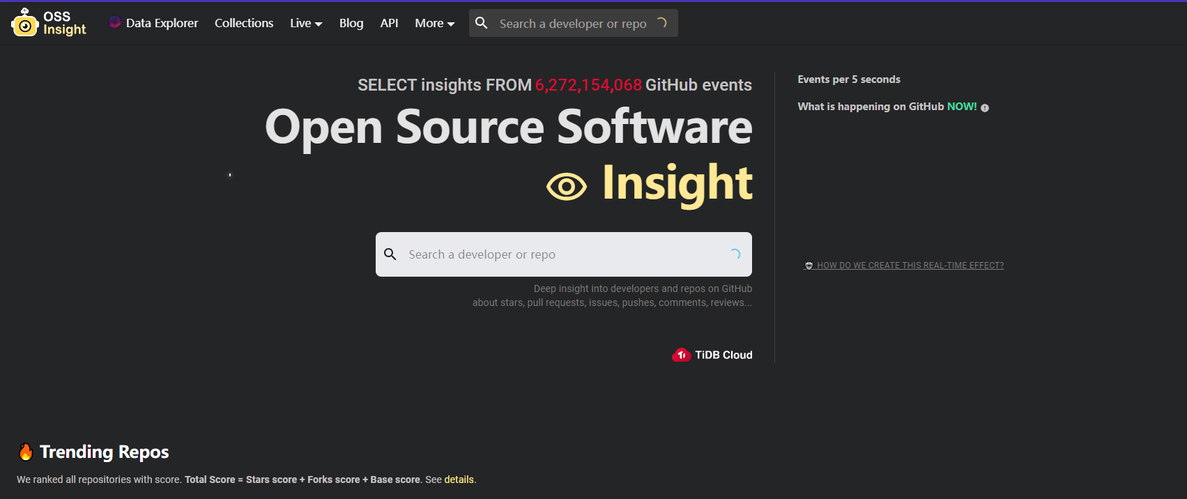 OSS洞察功能 Data Explorer是一款人工智能驱动的工具,旨在高效探索 GitHub 事件数据等。主要特点和优势包括: 自然语言查询:提出问题并自动生成 SQL 查询以快速获得见解 可视化结果:直观地显示查询结果,方便数据解读 多功能:能够探索任何数据集,而不仅仅是 GitHub 数据 针对大数据进行优化:处理复杂的分析查询和海量数据 Data Explorer 的用例可满足各种用户的需求: 数据分析师寻求用户友好的工具来探索和解释大型数据集 希望从 GitHub 事件数据中获取见解的开发人员 研究人员旨在借助人工智能生成的 SQL 查询来分析复杂数据 总体而言,Data Explorer 为数据探索和分析提供了便捷高效的解决方案,但用户应使用清晰、具体的短语以获得最佳结果。 官网地址:https://ossinsight.io/
