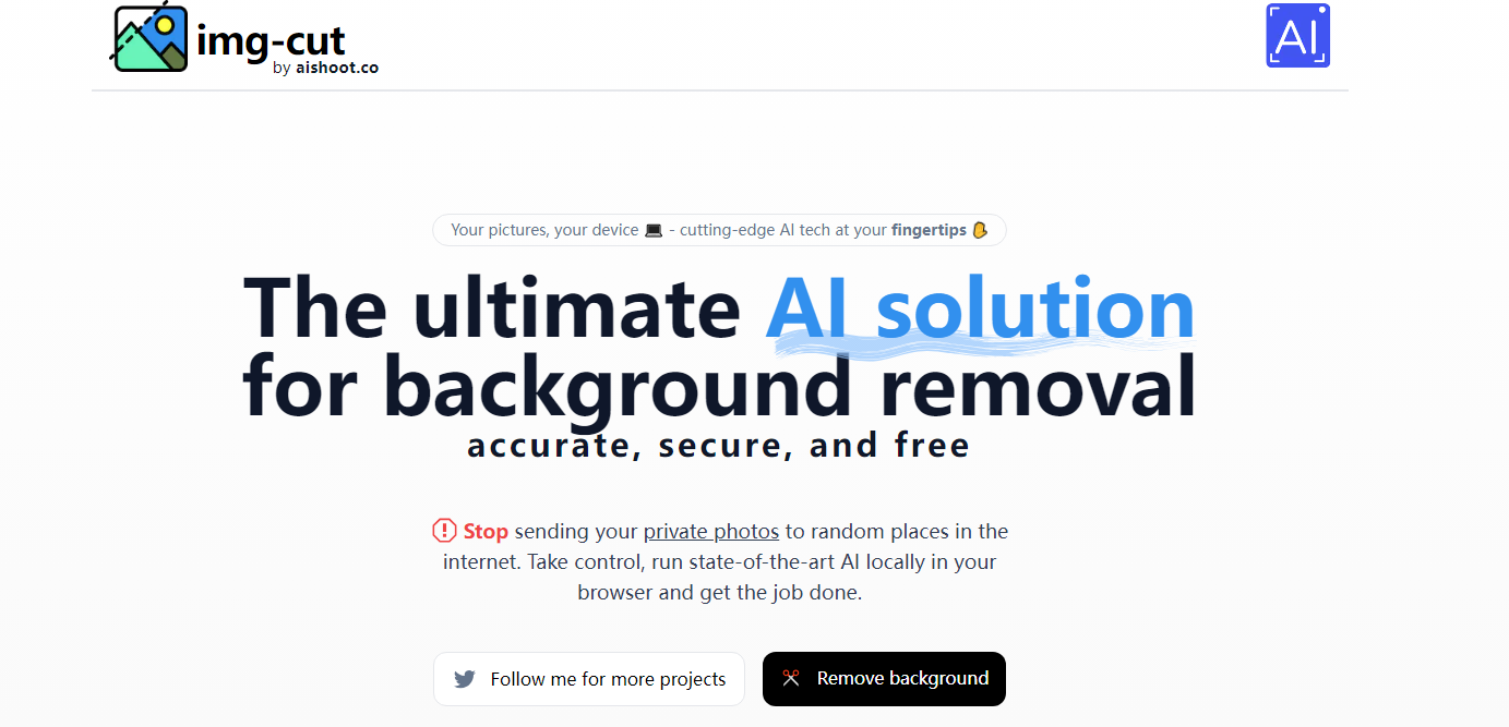 图像切割功能 Img-Cut是一款先进的人工智能驱动工具,专为照片背景去除而设计。它直接在您的本地浏览器中运行,与基于服务器的解决方案相比,可确保隐私和更快的处理速度。凭借最先进的人工智能技术,Img-Cut 为高效、准确的背景去除提供了终极解决方案。 主要特征: 基于本地浏览器: Img-Cut 直接在您的本地浏览器中运行,确保您个人照片的隐私和安全。 背景去除:人工智能驱动的工具可以准确地去除照片中的背景,让您可以隔离主体或创建透明图像。 隐私和安全:任何数据都不会发送到任何地方,保证您个人照片的隐私和机密性。 更快的处理速度:与基于服务器的解决方案相比,Img-Cut 基于本地浏览器的方法与出色的 GPU 相结合,可以实现更快的处理速度。 无缝的用户体验:该工具提供直观且用户友好的界面,使所有技能水平的用户都可以轻松轻松地进行背景删除。 高质量结果: Img-Cut 的先进 AI 算法可提供精确、高质量的背景去除结果,增强照片的视觉效果。 用例: 摄影:对于想要去除分散注意力的背景并突出主题的摄影师来说,Img-Cut 是一个很有价值的工具。 平面设计:平面设计师可以利用 Img-Cut 为各种设计项目创建透明图像或隔离对象。 电子商务:在线卖家可以使用 Img-Cut 删除产品照片中的背景,从而为其列表生成专业且有吸引力的图像。 个人用途:无论您是想创建个性化照片拼贴还是在社交媒体上分享照片,Img-Cut 都可以帮助您获得干净且具有视觉吸引力的结果。 Img-Cut提供了人工智能驱动的解决方案,可直接在本地浏览器中高效、准确地去除背景。