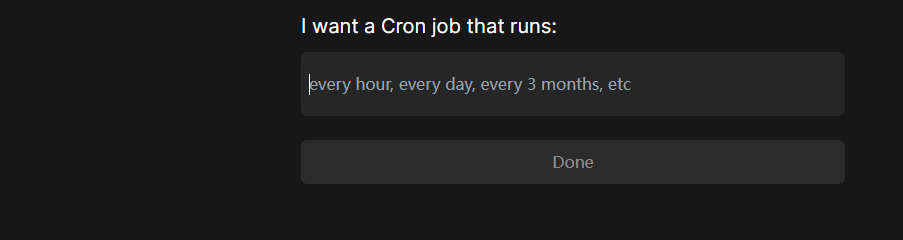 Cron人工智能功能 Cron AI是一款人工智能驱动的 cron 表达式生成器,旨在简化 cron 作业的创建。主要特点和优势包括: 易于使用:快速将输入的单词转换为 cron 表达式以设置 cron 作业 效率:降低创建 cron 作业所需的复杂性和时间 用户友好的界面:简化了从输入的单词生成 cron 表达式的过程 Cron AI 的用例非常适合各种专业人士: 寻求自动化流程(例如调度任务或作业)的系统管理员 希望以较低的复杂性高效创建 cron 作业的开发人员 旨在简化任务自动化的组织和个人 总体而言,Cron AI 为创建 cron 作业提供了强大而高效的解决方案,使其成为需要自动化任务管理的人的宝贵资产。