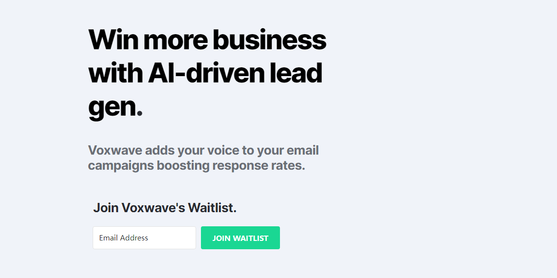 Voxwave 人工智能功能 将冰冷的销售线索转化为炙手可热的买家。使用 {name} 和 {company} 等动态标签向预热的潜在客户发送数百封个性化语音电子邮件。或者向超过 100k 的冷线线索发送静态语音消息。无论您在 Voxwave 处于什么阶段,您的领先优势都会为您带来更多的预约电话和更多的销售额。