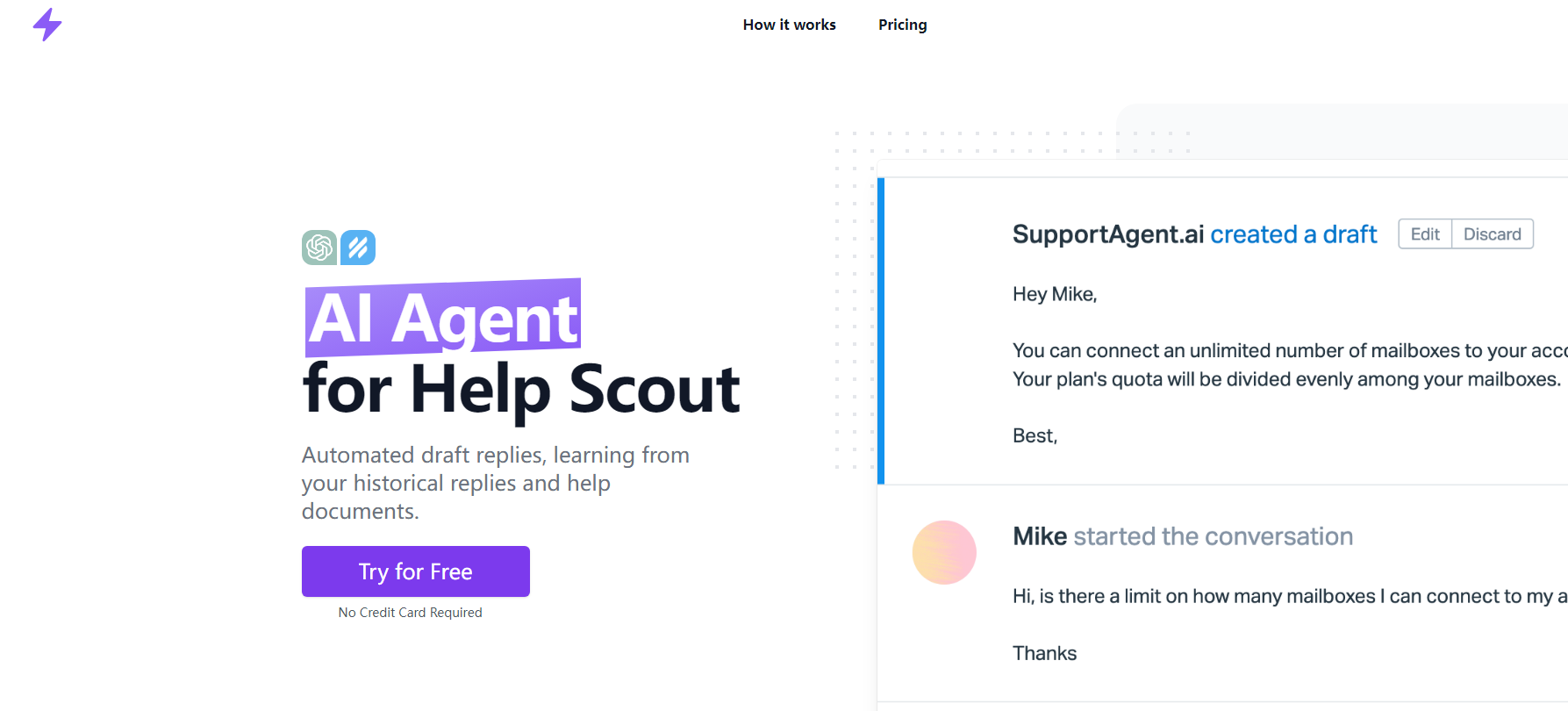 自动草稿回复:该工具根据对支持代理之前回复的分析,为 HelpScout 支持票证生成自动草稿回复。