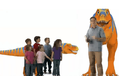 在先前标记的起点处的运动锥体(或其他标记)上贴一张霸王龙的图片。站在它旁边。然后,让您的孩子拍摄第二张带有胶带环的霸王龙照片,然后步行 40 英尺到达终点,即另一个圆锥体所在的位置。让您的孩子将另一个霸王龙运动锥体连接到另一端。