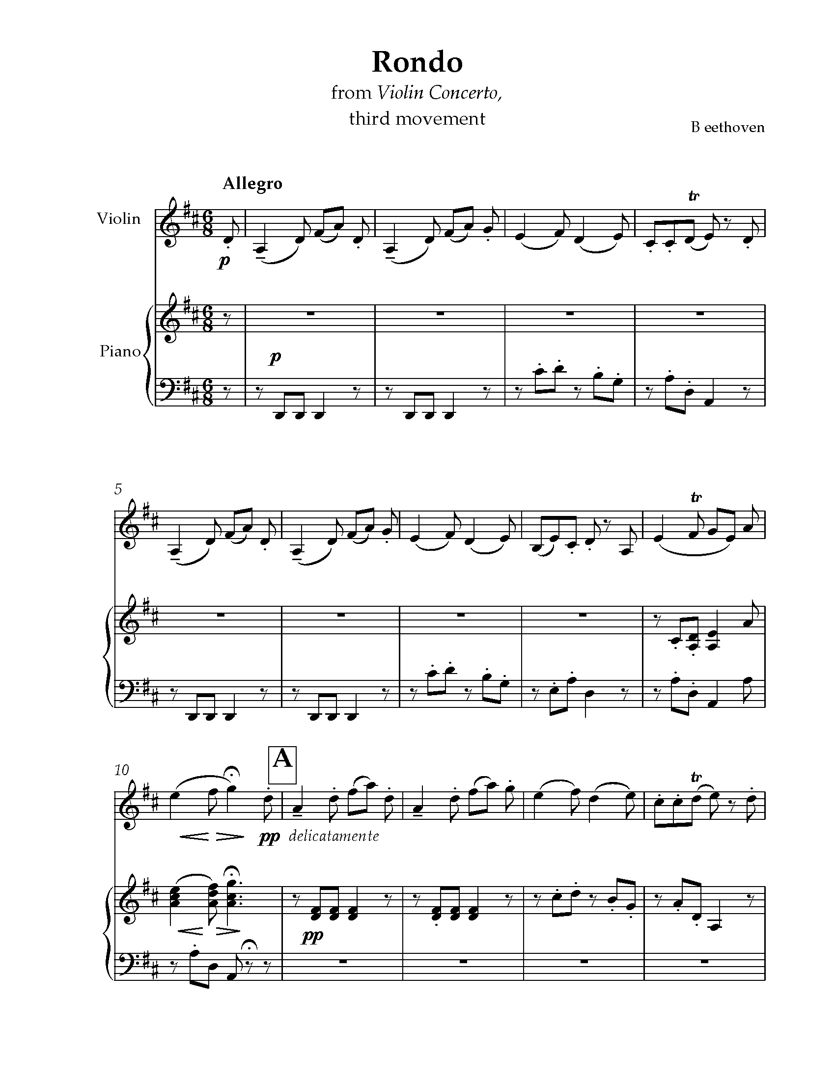 贝多芬的C#小调第14号奏鸣曲三乐章的开头是另一部最初为钢琴而写的作品,也是一首伟大的小提琴独奏: