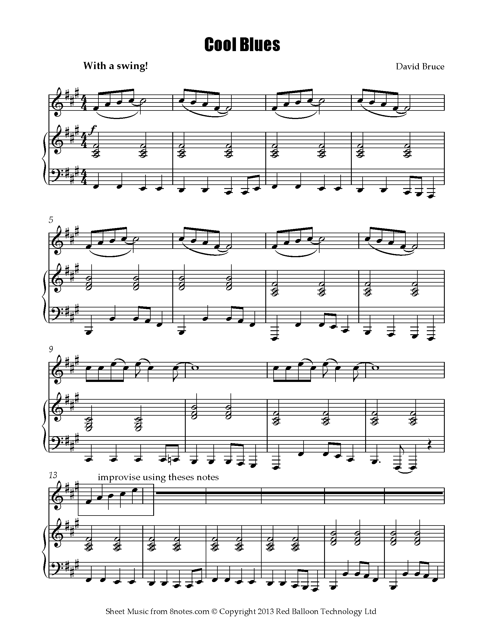 这首十二小节的布鲁斯也非常适合练习即兴演奏。听听这个富有想象力的表演,例如: