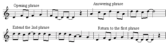 为了创建您的第一个真正的布鲁斯旋律,我们将在此问题的基础上构建一个答案想法,并创建一个包含四个主要部分的旋律:开头短语或问题