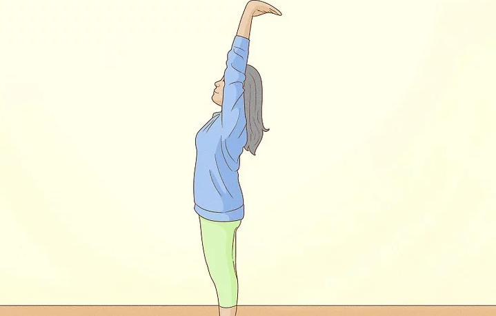 站立时,将双臂举至空中。您的手掌应面向天空,手指应指向后方。