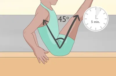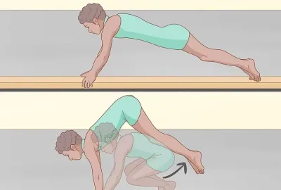 当您第一次踏上平衡木时,将每条腿放在两侧。保持脚趾指向地板,双腿弯曲。您应该将身体和双手放在身前形成一条直线,并握住横梁作为支撑。