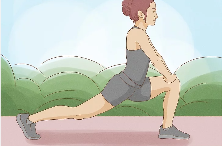 为此,请进行跑步者的伸展运动。向前迈出一步,就像做弓箭步一样。用指尖尽可能低地接触地面。吸气并轻轻伸直腿前部,抬起臀部。伸展腿前部时呼气,然后返回到弯曲位置。