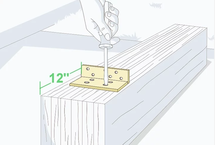 将角支架拧到横梁下方和边缘,距两端约 30 厘米。