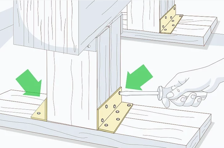 在每条腿下方安装一块 61 厘米的板(38 x 89 毫米),并在每侧拧入 4 个木螺钉。