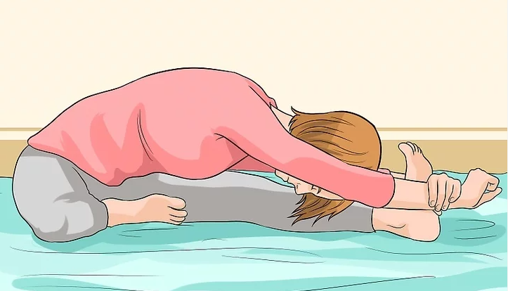 对于“头到膝盖”的姿势(或 Janu Sirsasana),坐下来,背部挺直,双腿伸直在身前。弯曲右膝,然后吸气的同时伸展背部。身体前倾,握住左腿,将注意力集中在大脚趾上,以帮助头脑清醒。专注于呼吸,只要感觉舒服就保持这个姿势。然后在另一侧重复该动作。