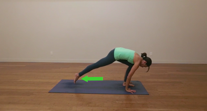 根据您的瑜伽经验水平,您可以通过迈步或跳跃返回到 adho mukha dandasana 位置。这将是您完成流瑜伽之前的准备姿势,流瑜伽会导致面朝下的狗姿势。