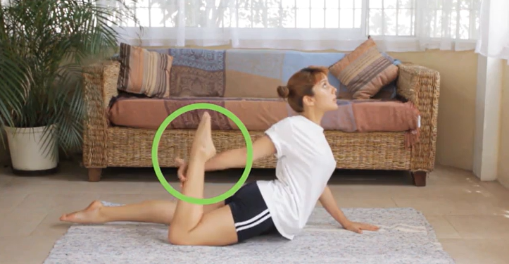 为了练习眼镜蛇式中的平衡感,请弯曲右膝并用右手抓住脚踝,形成半青蛙式。保持五次呼吸,放松,然后在另一侧重复。用另一只手抓住脚踝,使这个位置变得更加困难。