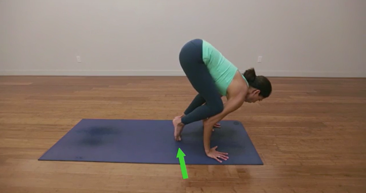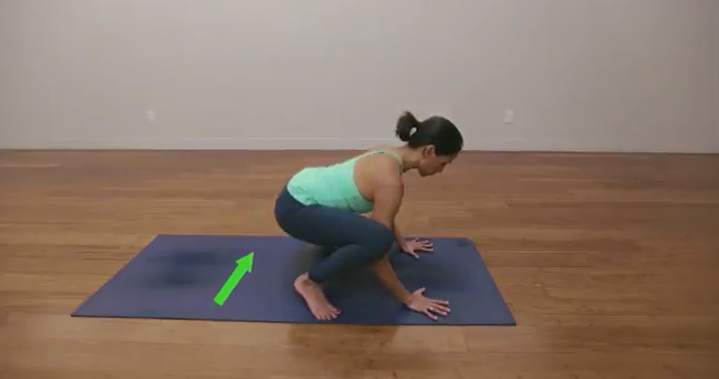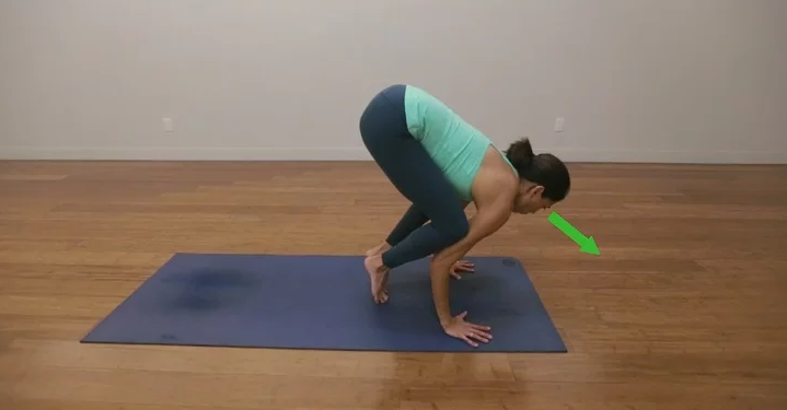 切勿跳入乌鸦式(或任何其他瑜伽姿势)!慢慢地、逐渐地向前移动你的重心,直到你的脚离开地面。