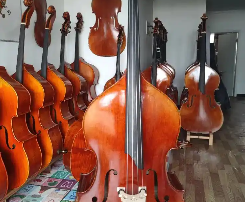 低音提琴是一种擦奏弦鸣乐器,属于提琴家族。它的音色庄重而低沉,是乐队中音响的支柱和基本节奏的基础。低音提琴的高度约为180~220厘米,下端有一支柱,形似大提琴。演奏时通常将琴放在地上,演奏者立着或靠在高凳上演奏。